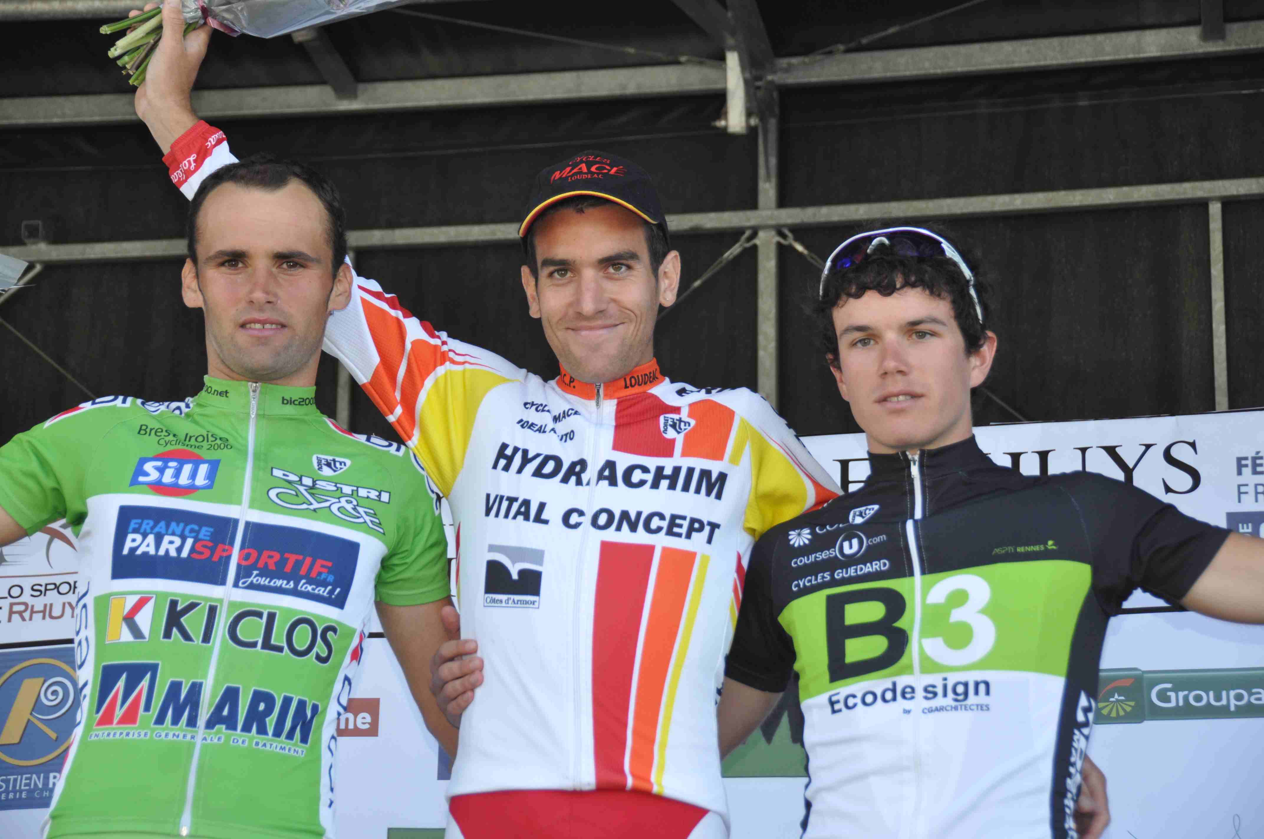 Le podium du Tour de Rhuys : Julien Jégou (2e), Vincent Ragot (1er) et Fabrice Seigneur (3e)