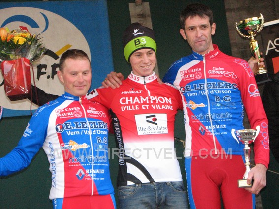 Le podium élite : Damien Chatelais (2e), Miguel Fillaut (1er) et Mickaël Guillard (3e).
