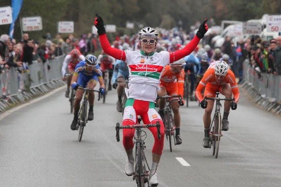 Tomasz Olejnik (USSA Pavilly Barentin) résiste de justesse au retour du peloton !