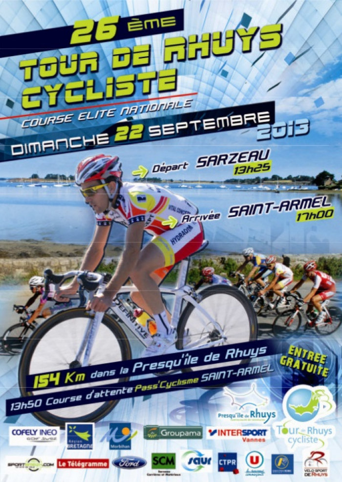 La 26e édition du Tour de Rhuys se dispute ce dimanche dans le département du Morbihan. 154 kilomètres sont au programme. L'épreuve Elite Nationale partira de Sarzeau à 13h25. L'arrivée sera jugée à Saint-Armel. La victoire était revenue l'an dernier à Vincent Ragot (VC Pays de Loudéac). Retrouvez ci-dessous la liste des engagés. Tous les détails sur www.velosportderhuys.fr.