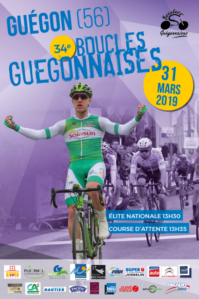 La 34e édition des Boucles Guégonnaises (Elite Nationale) se disputera le dimanche 31 mars à Guégon (Morbihan). Au programme : 107,680 km en ligne et 6 tours de circuit de 8,670 km soit une distance totale de 159,7 kilomètres. Le départ fictif sera donné à 13h30, le réel à 13h35. La victoire était revenue l'an dernier à Emmanuel Morin, alors à Sojasun espoir-ACNC et désormais pro chez Cofidis. Retrouvez ci-dessous la liste des des engagés et tous les détails sur www.bouclesguegonnaises.fr. Remerciements à Mickaël Bernard - www.bouclesguegonnaises.fr