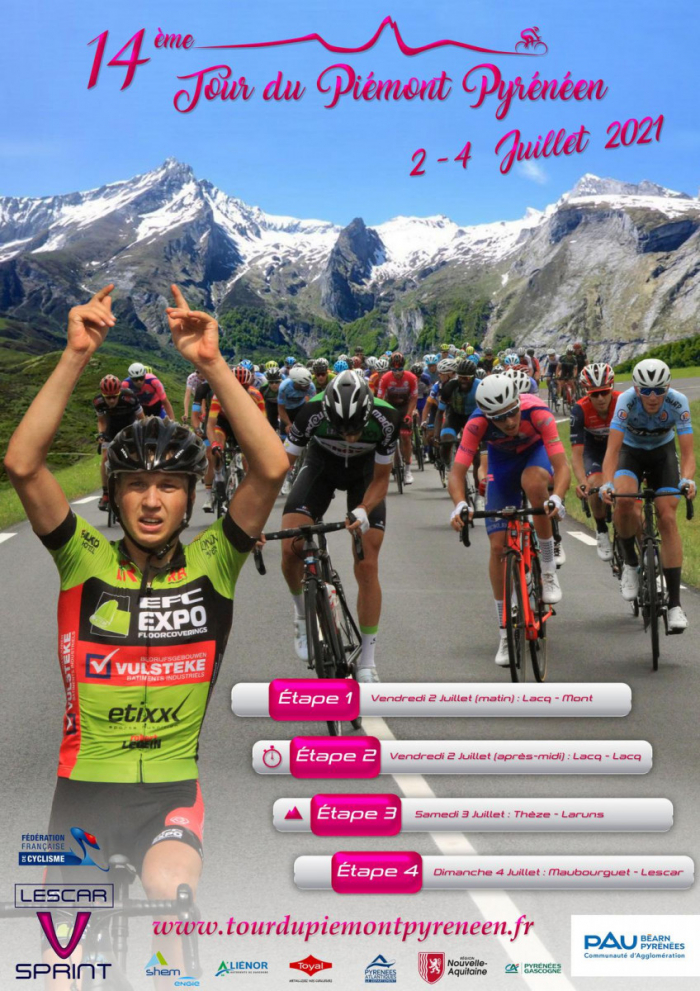 La 14e édition du Tour du Piémont Pyrénéen (Elite Nationale) se dispute du vendredi 2 au dimanche 4 juillet. Quatre étapes, dont un contre-la-montre par équipes, figurent au programme. Le lauréat succédera au Belge Mauri Vansevenant, vainqueur en 2019 (voir classements). La course sera à suivre en direct sur DirectVelo. Retrouvez ci-dessous la liste des étapes et des engagés. Toutes les informations sur www.tourdupiemontpyreneen.fr. Remerciements à Pascal Baudron - www.tourdupiemontpyreneen.fr