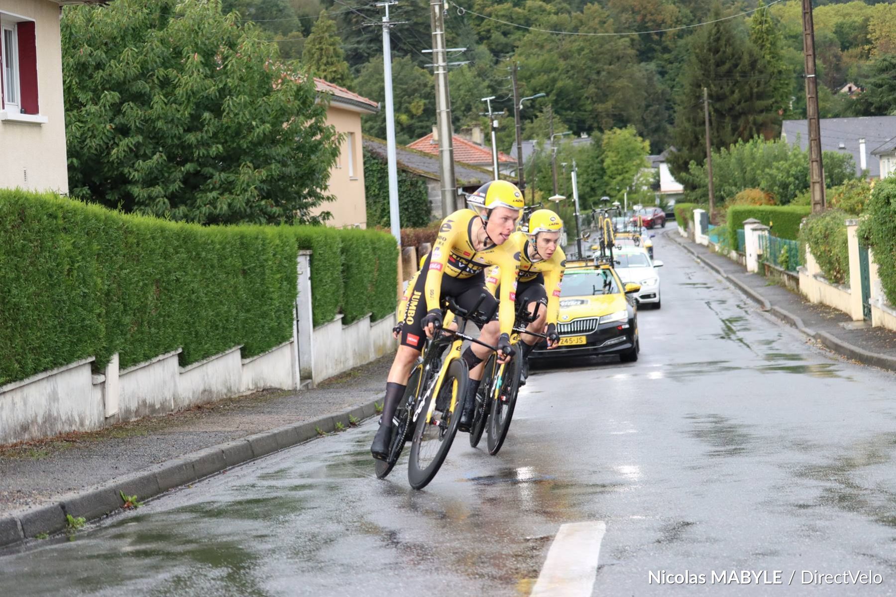Pas de quoi donc perturber le train jaune-et-noir. "Nous sommes restés confiants. Nous espérions réaliser un bon chrono. Nous avons fait un bon repérage", indique Johannes Staune-Mittet. Il le fallait au vu des conditions pluvieuses. "C’était une situation dangereuse et chaotique", poursuit le 2e du Tour de l’Avenir. “On voulait vraiment appuyer fort sur les pédales dans les montées et aller plus doucement dans les descentes car c’était très humide et glissant", révèle son coéquipier irlandais.
