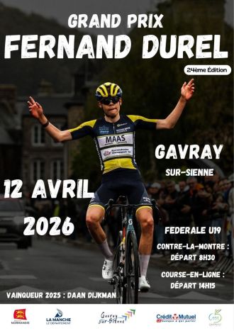 samedi 11 avril 2026 Illustration de Grand Prix Fernand Durel : Les partants Route Grand Prix Fernand Durel : Les partants lu La 24e édition du Grand Prix Fernand Durel se dispute ce dimanche 12 avril autour de Gavray-sur-Sienne (Manche). Un contre-la-montre et une étape en ligne figurent au programme de l'épreuve Fédérale U19. La victoire était revenue l'an dernier au Néerlandais Daan Dijkman. Retrouvez ci-dessous les horaires de départ et la liste des partants. Toutes les informations en cliquant ici.Les étapes :12/04 - Et. 1 : CLM individuel à...