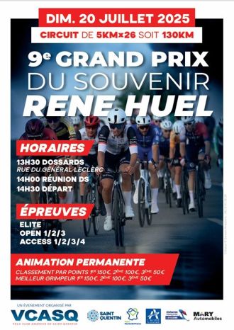 vendredi 18 juillet 2025 Illustration de Grand Prix Souvenir René Huel à Saint-Quentin : Les engagés Route Grand Prix Souvenir René Huel à Saint-Quentin : Les engagés lu Le Vélo Club Amateur Saint-Quentin organise ce dimanche 20 juillet le 9e Grand Prix Souvenir René Huel à Saint-Quentin (Aisne). Au programme de l'épreuve Élite, Open 1-2-3 et Access 1-2-3-4 : un circuit de 5 km à effectuer 26 fois soit 130 kilomètres. Le départ sera donné à 14h30. La victoire était revenue l'an dernier à Guillaume Dauschy. Retrouvez ci-dessous la liste des engagés.La liste des engagés...