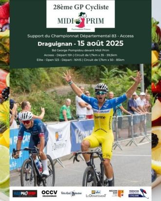 jeudi 14 août 2025 Illustration de Grand Prix Midi Prim : Les engagés Route Grand Prix Midi Prim : Les engagés lu Le Vélo Club Vidaubannais organise ce vendredi 15 août le 28e Grand Prix Midi Prim à Draguignan (Var). Au programme : un circuit de 1,7 km à parcourir 50 fois soit une distance de 85 kilomètres. Le départ sera donné à 16h15. La victoire était revenue l'an dernier à Louka Ducruet. Retrouvez ci-dessous la liste des engagés de l'épreuve Élite et Open 1-2-3.La liste des engagés :[startlist=entrants]