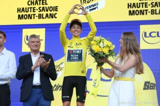 lundi 4 août 2025 Crédit photo Freddy Guérin / DirectVelo Route Tour de France Femmes - Et. 9 : Les photos lu Pauline Ferrand-Prévot (Visma-Lease a Bike Team) a remporté en solitaire, ce dimanche, la neuvième et dernière étape du Tour de France Femmes avec Zwift (2.WWT), disputée entre Praz-sur-Arly et Châtel (Haute-Savoie) sur une distance de 124,1 kilomètres. La Française a devancé Demi Vollering (FDJ-Suez) et Katarzyna Niewiadoma (Canyon//SRAM Zondacrypto).Pauline Ferrand-Prévot remporte le Tour de France et succède à...