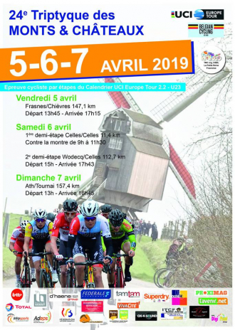 vendredi 5 avril 2019 Illustration de Triptyque des Monts et Châteaux : Les partants Route Triptyque des Monts et Châteaux : Les partants lu La 24e édition du Triptyque des Monts et Châteaux (2.2) se disputera de vendredi à dimanche. L'épreuve belge accueillera 24 équipes, dont une Continental pro et neuf Continental. La course sera à suivre en direct intégral sur DirectVelo. Le vainqueur succédera à Jasper Philipsen, double vainqueur de cette course. Retrouvez ci-dessous la liste des étapes et des partants.Les étapes :05/04 - Et. 1 : Frasnes-Les-Anvaing...