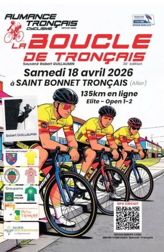 vendredi 17 avril 2026 Illustration de Boucle du Pays de Tronçais : Les engagés Route Boucle du Pays de Tronçais : Les engagés lu La 36e édition de la Boucle du Pays de Tronçais-Souvenir Robert Guillaumin se dispute ce samedi 18 avril. L'épreuve Élite et Open 1-2 se déroulera sur 134,3 kilomètres autour de Saint-Bonnet-Tronçais (Allier). Le départ fictif sera donné à 13h30 et le réel à 13h33. Le vainqueur succédera au Sud-Africain Gustav Basson. Retrouvez ci-dessous la liste des engagés de la course organisée par Aumance...