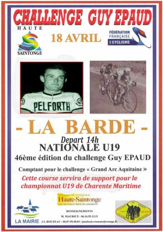 vendredi 17 avril 2026 Illustration de Challenge Guy Epaud : Les engagés Route Challenge Guy Epaud : Les engagés lu Le Comité Liaison/Promouvoir des Courses Cyclistes organise ce samedi 18 avril à La Barde (Charente-Maritime) la 46e édition du Challenge Guy Epaud-Tour du Canton de Montguyon. Au programme : un circuit de 10 km à parcourir 12 fois soit 120 kilomètres. Le départ sera donné à 14h. Le vainqueur succèdera au palmarès à Victor Meunier. Retrouvez ci-dessous la liste des engagés de l'épreuve Fédérale...