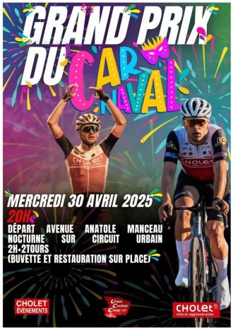 dimanche 27 avril 2025 Illustration de Grand Prix du Carnaval de Cholet : Les engagés Route Grand Prix du Carnaval de Cholet : Les engagés lu L'Union Cycliste Cholet 49 organise ce mercredi 30 avril le Grand Prix du Carnaval de Cholet (Maine-et-Loire). Au programme : un circuit de 1,7 km à effectuer pendant 2h + 2 tours. Le départ sera donné à 20h. Le vainqueur succédera au palmarès à Léo-Paul Jamin (voir classement). Retrouvez ci-dessous la liste des engagés de l'épreuve Élite, Open et Access.La liste des engagés :[startlist=entrants] Remerciements à...