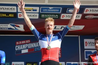 dimanche 29 juin 2025 Crédit photo Freddy Guérin - DirectVelo Route Dorian Godon, la victoire d’un « super bon mec » lu Paul Lapeira avait un souhait avant de se déplacer aux Herbiers. Le tenant du titre voulait qu’un coéquipier découvre à son tour la joie de porter le maillot de Champion de France pendant une année. C’est finalement Dorian Godon qui va connaître ce bonheur, au terme d’un final haletant.Au moment de la Marseillaise, au pied du podium, tous les coureurs de Decathlon AG2R La Mondiale ne cachaient pas leur joie sincère de voir le Rhodanien...