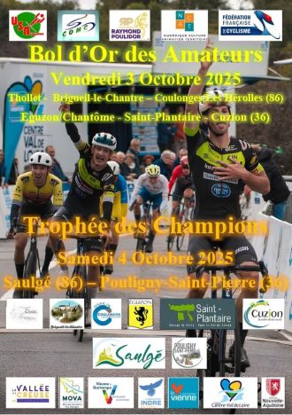 mercredi 1er octobre 2025 Illustration de Bol d'Or des Amateurs : Les engagés Route Bol d'Or des Amateurs : Les engagés lu Le Bol d'Or des Amateurs (Élite Nationale) se dispute ce vendredi 3 octobre entre Thollet (Vienne) et Cuzion (Indre), sur une distance de 180 kilomètres. Le départ fictif sera donné à 11h10 et le réel à 11h30. Le vainqueur succèdera à Hugo Millet. Retrouvez ci-dessous la liste des engagés et toutes les informations en cliquant ici.La liste des engagés :[startlist=entrants] Remerciements à Denis Clément, Challenge...