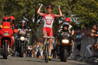 dimanche 29 juillet 2012 Illustration de Tour du Canton de la Trimouille : Classement Route Tour du Canton de la Trimouille : Classement lu Benoît Daeninck (CC Nogent-sur-Oise) a remporté ce dimanche le Tour du Canton de la Trimouille-Souvenir Raymond Perrin (Toutes catégories), 1ère épreuve du Challenge Poitou-Berry. Il devance Yvan Sartis (Océane Cycle Poitevin), son dernier compagnon d'échappée. Aurélien Moulin (V. Naintré) complète le podium. La victoire était revenue l'an dernier à Samuel Plouhinec. Classement : 1 DAENINCK...