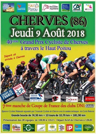mardi 7 août 2018 Illustration de Grand Prix de Cherves : Les engagés Route Grand Prix de Cherves : Les engagés lu Le 40e Grand Prix de Cherves, septième manche de la Coupe de France DN1, se dispute ce jeudi dans le département de la Vienne. 181,960 kilomètres -une boucle de 74,360 puis 10 tours de 10,760 km- sont au programme. Le départ fictif sera donné à 12h20 et le réel à 12h30. La course est à suivre en direct intégral sur DirectVelo. Après six manches, le CR4C Roanne occupe la tête de la Coupe de France DN1 (voir ici). Retrouvez...