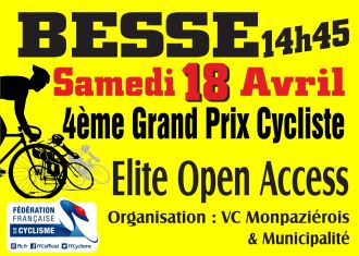 jeudi 16 avril 2026 Illustration de Grand Prix du Pays de Besse : Les engagés Route Grand Prix du Pays de Besse : Les engagés lu La quatrième édition du Grand Prix du Pays de Besse (Élite, Open 1-2-3 et Access 1-2-3-4) se dispute ce samedi 18 avril à Besse (Dordogne). 105,690 kilomètres -13 tours de 8,130 km- sont au programme de la course organisée par le VC Monpazierois. Le départ sera donné à 14h45. Le vainqueur succèdera au palmarès à Luca De Vincenzi. Retrouvez ci-dessous la liste des engagés de l'épreuve qui servira de support...