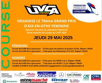 mardi 27 mai 2025 Illustration de Grand Prix d'Aix-en-Othe Féminin : Les engagées Route Grand Prix d'Aix-en-Othe Féminin : Les engagées lu Le Grand Prix d'Aix-en-Othe Féminin (Aube) se dispute ce jeudi 29 mai. Au programme de la course organisée par l'UVCA Troyes : un circuit de 8,450 km à parcourir 10 fois soit 84,5 kilomètres. Le départ sera donné à 14h30. Retrouvez ci-dessous la liste des engagées de l'épreuve Nationale Femmes.La liste des engagées :[startlist=entrants]