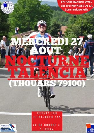mercredi 27 août 2025 Illustration de Prix Talencia à Thouars : Les engagés Route Prix Talencia à Thouars : Les engagés lu Le VC Thouars organise ce mercredi 27 août le Prix Talencia à Thouars (Deux-Sèvres). Au programme de l'épreuve Élite et Open 1-2-3 : un circuit à effectuer pendant 1h45 + 3 tours. Le départ sera donné à 19h30. La victoire était revenue l'an dernier à Hans Rullier. Retrouvez ci-dessous la liste des engagés.La liste des engagés :[startlist=entrants]