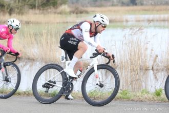 lundi 16 février 2026 Crédit photo Freddy Guérin - DirectVelo Route Emmanuel Morin euphorique et combatif pour sa reprise lu Emmanuel Morin a des fourmis dans les jambes dans le Circuit des Plages Vendéennes. Samedi, le représentant de la Crêpe de Brocéliande était déjà volontaire pour prendre un bon de sortie. Ce dimanche, l'ex-pro de Van Rysel Roubaix a retourné la galette pour remettre ça et a été désigné le plus combatif du jour. A plus de 100 kilomètres de l'arrivée, il est sorti en compagnie d'Evan Pavis, le Vendée...