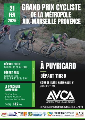 samedi 21 février 2026 Illustration de Grand Prix de la Métropole Aix-Marseille-Provence : Les partants Route Grand Prix de la Métropole Aix-Marseille-Provence : Les partants lu Le Grand Prix de la Métropole Aix-Marseille-Provence (ex-Grand Prix du Pays d'Aix) se dispute ce samedi 21 février à Puyricard (Bouches-du-Rhône). Au programme de l'épreuve Élite Nationale : 6 tours de circuit de 22 km + 6 km soit 138 kilomètres. Le départ sera donné à 11h30. Le vainqueur succèdera au palmarès à Antoine Berger. La course sera à suivre en direct sur DirectVelo. Retrouvez ci-dessous...