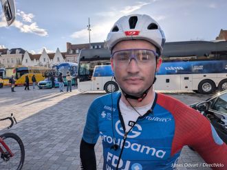 jeudi 26 mars 2026 Crédit photo Pierre Willemetz - DirectVelo Route Une plainte contre un militant écologiste : Belgian Cycling réagit après le Tour de Bruges lu Mercredi, à 30 kilomètres de l'arrivée du Tour de Bruges, un militant écologiste s'est assis en plein milieu d'un secteur pavé. Il était vêtu d'un T-shirt où était écrit "Les enfants meurent de la crise climatique". Il s'est relevé juste avant le passage du peloton mais le coup de frein provoqué par sa présence a entraîné une chute dans le peloton qui a, notamment, éliminé Juan...