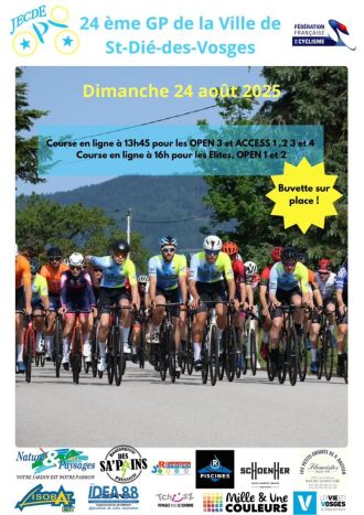 vendredi 26 août 2022 Illustration de Grand Prix de Saint-Dié-des-Vosges : Les engagés Route Grand Prix de Saint-Dié-des-Vosges : Les engagés lu La Jeune Étoile Cycliste Déodatienne et Environs organise ce samedi 27 août en semi-nocturne le 22e Grand Prix de la ville de Saint-Dié-des-Vosges-Trophée Robert Bernard. Au programme : un circuit de 1,1 km à parcourir 67 fois soit 73,7 kilomètres. Le départ sera donné à 20h. La victoire était revenue l'an dernier à Melvin Heynderickx (voir classement). Retrouvez ci-dessous la liste des engagés de l'épreuve...