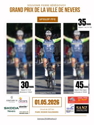 mercredi 29 avril 2026 Illustration de Grand Prix de Nevers : Les engagés Route Grand Prix de Nevers : Les engagés lu Le Vélo Sport Nivernais Morvan organise ce vendredi 1er mai la 101e édition du Grand Prix de Nevers-Souvenir Pierre Bérégovoy dans le département de la Nièvre. Au programme : un circuit de 2,070 km à parcourir 44 fois soit une distance totale de 91,080 kilomètres. Le départ sera donné à 15h30. Le vainqueur succédera au palmarès à Loïc Forestier. Retrouvez ci-dessous la liste des engagés de...