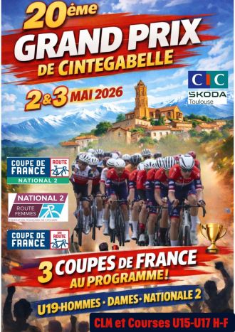 jeudi 30 avril 2026 Illustration de Grand Prix de Cintegabelle - U19 : Les engagés Route Grand Prix de Cintegabelle - U19 : Les engagés lu Le GSC Blagnac Vélo Sport 31 organise ce samedi 2 mai le Grand Prix de Cintegabelle CIC & Skoda Toulouse–Frédéric Moncassin Classic, support de la troisième manche de la Coupe de France U19. 15,2 kilomètres sont au programme de l'épreuve chronométrée. Le premier coureur s'élancera à 10h30. Le vainqueur succédera au palmarès à Alan Tortigue. La course sera à suivre en direct sur DirectVelo....