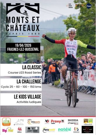 samedi 18 avril 2026 Illustration de Monts et Châteaux Classic : Les engagés Route Monts et Châteaux Classic : Les engagés lu La Monts et Châteaux Classic (1.13 IC1), manche de la U23 Road Series, se disputera ce dimanche 19 avril à Frasnes-lez-Buissenal (Province de Hainaut). 156 kilomètres -75,2 km en ligne et un circuit de 20,2 km à effectuer 4 fois- sont au programme. Le départ sera donné à 13h05. Le vainqueur succédera au palmarès à Maxence Place. La course sera à suivre en direct sur DirectVelo. Retrouvez ci-dessous la liste des engagés...