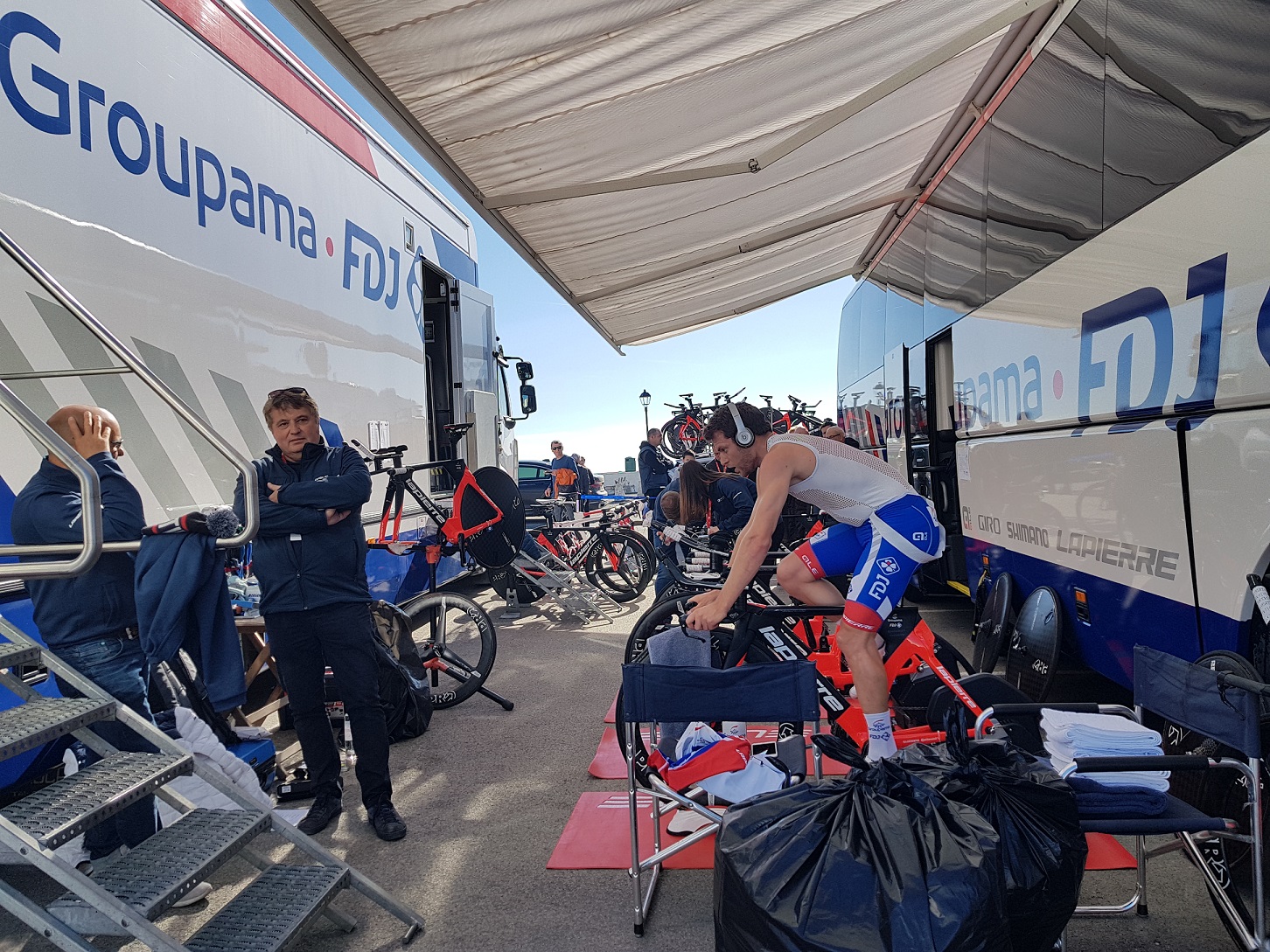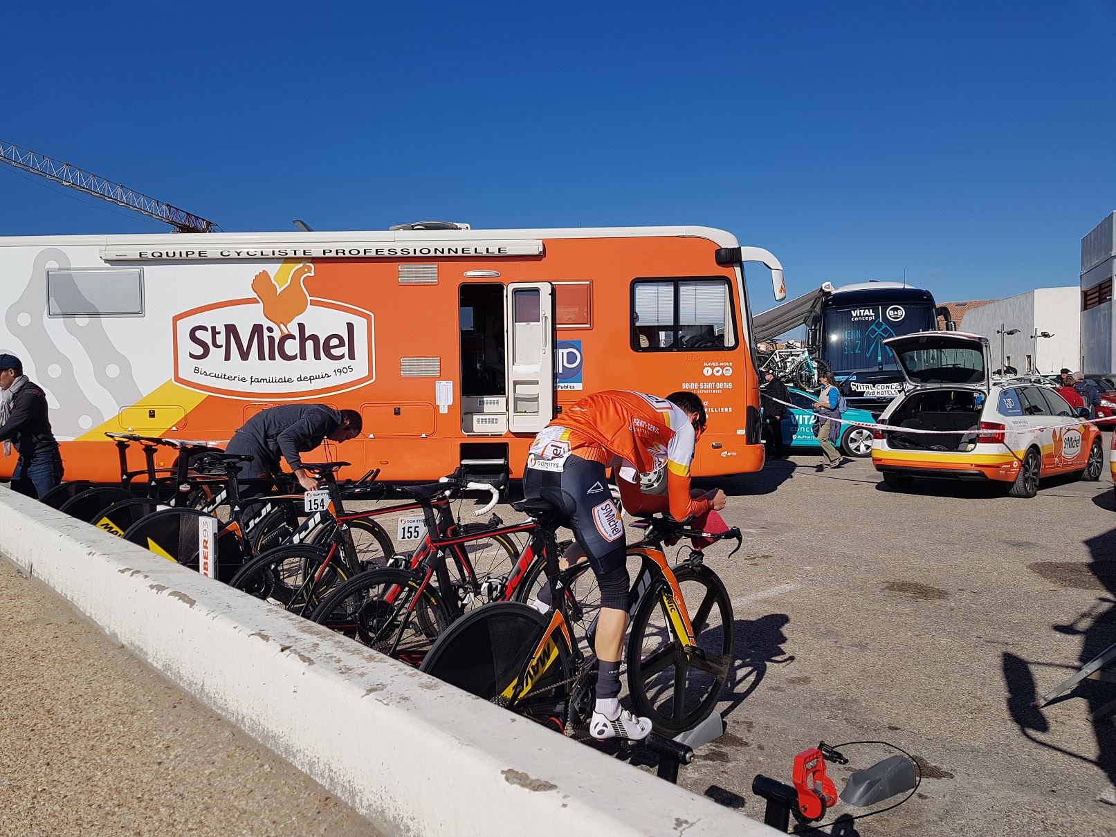 Rudy BARBIER (Israel Cycling Academy) a dû changer de vélo après 20 m.