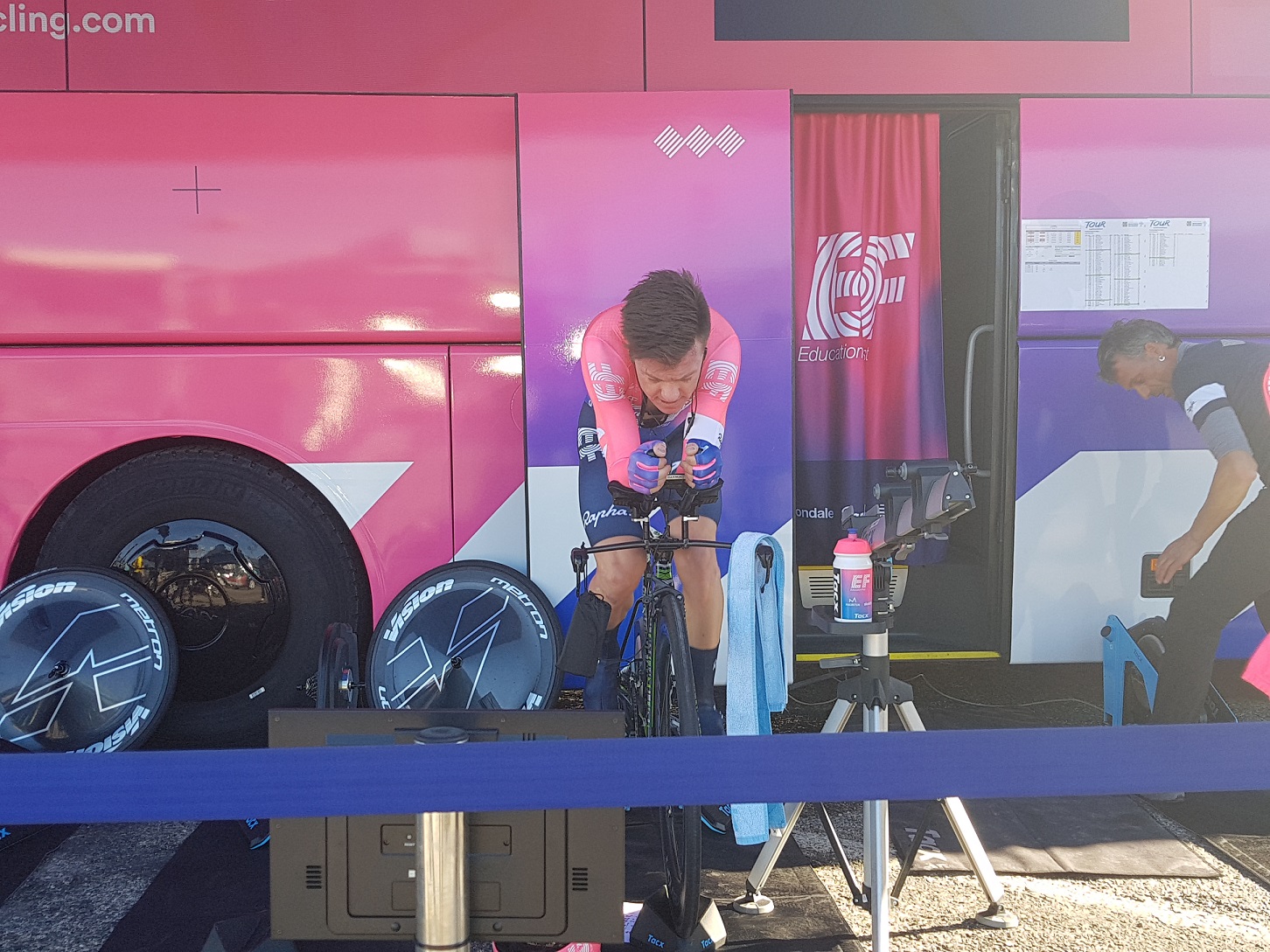 Sebastian LANGEVELD (EF Education First) prend le meilleur temps en 10'14''.