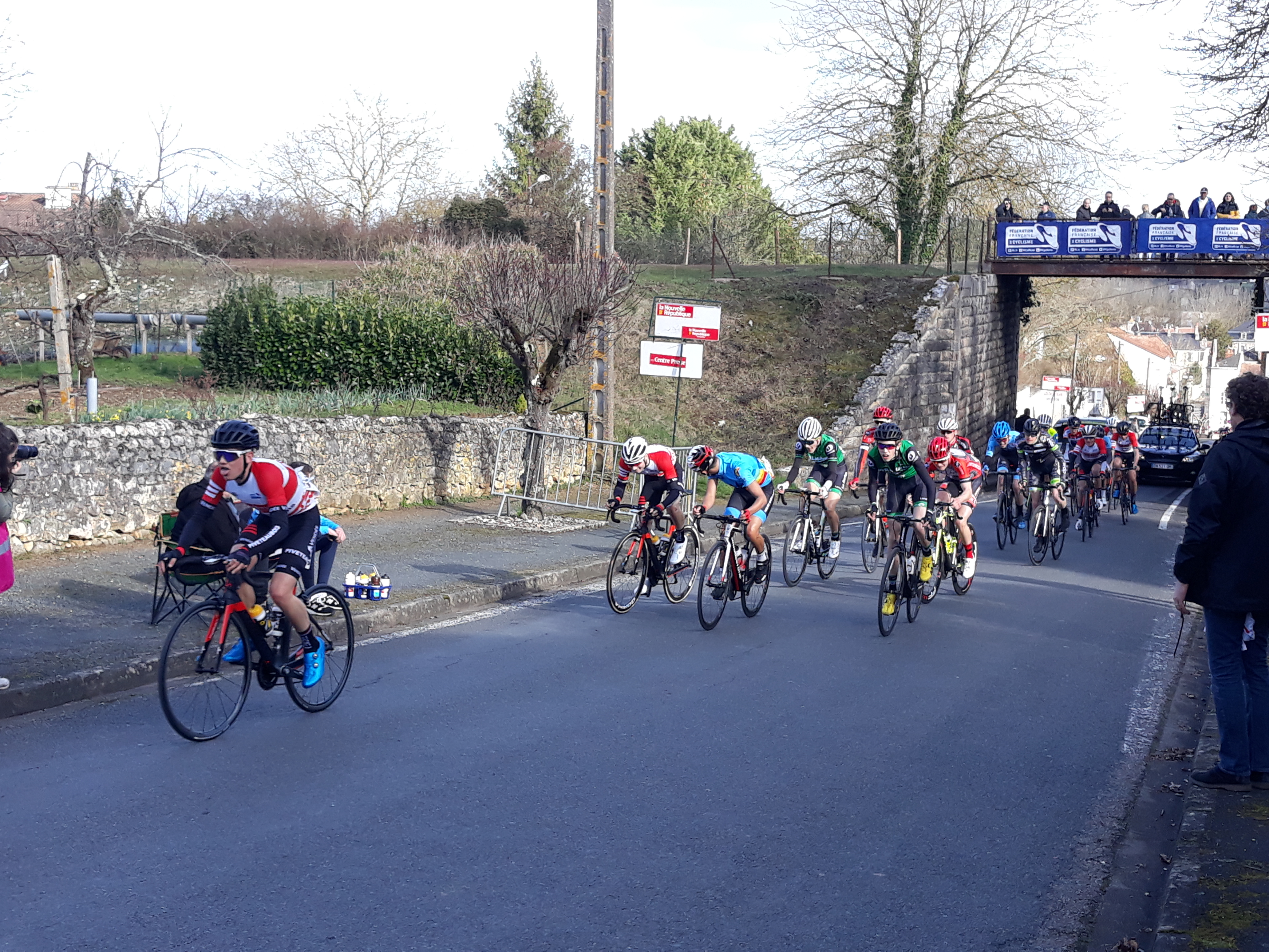 Juste derrière, Nathan ROTH (Cycle Poitevin), Thomas MOLINIE (Culture Vélo Look Racing Team U19), Clarence GENAUDEAU(Vendée), Lucas CUMENAL (CC Marmande 47), Yugi TSUDA (Japon).