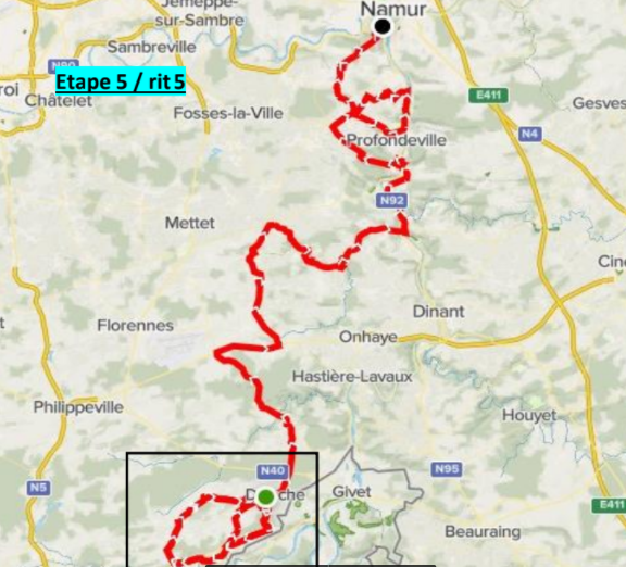 Aujourd'hui, les coureurs doivent donc parcourir 155 kilomètres au départ de Doische. Ils ont d'abord deux boucles de 27 kilomètres et une de 14 autour de Doische.