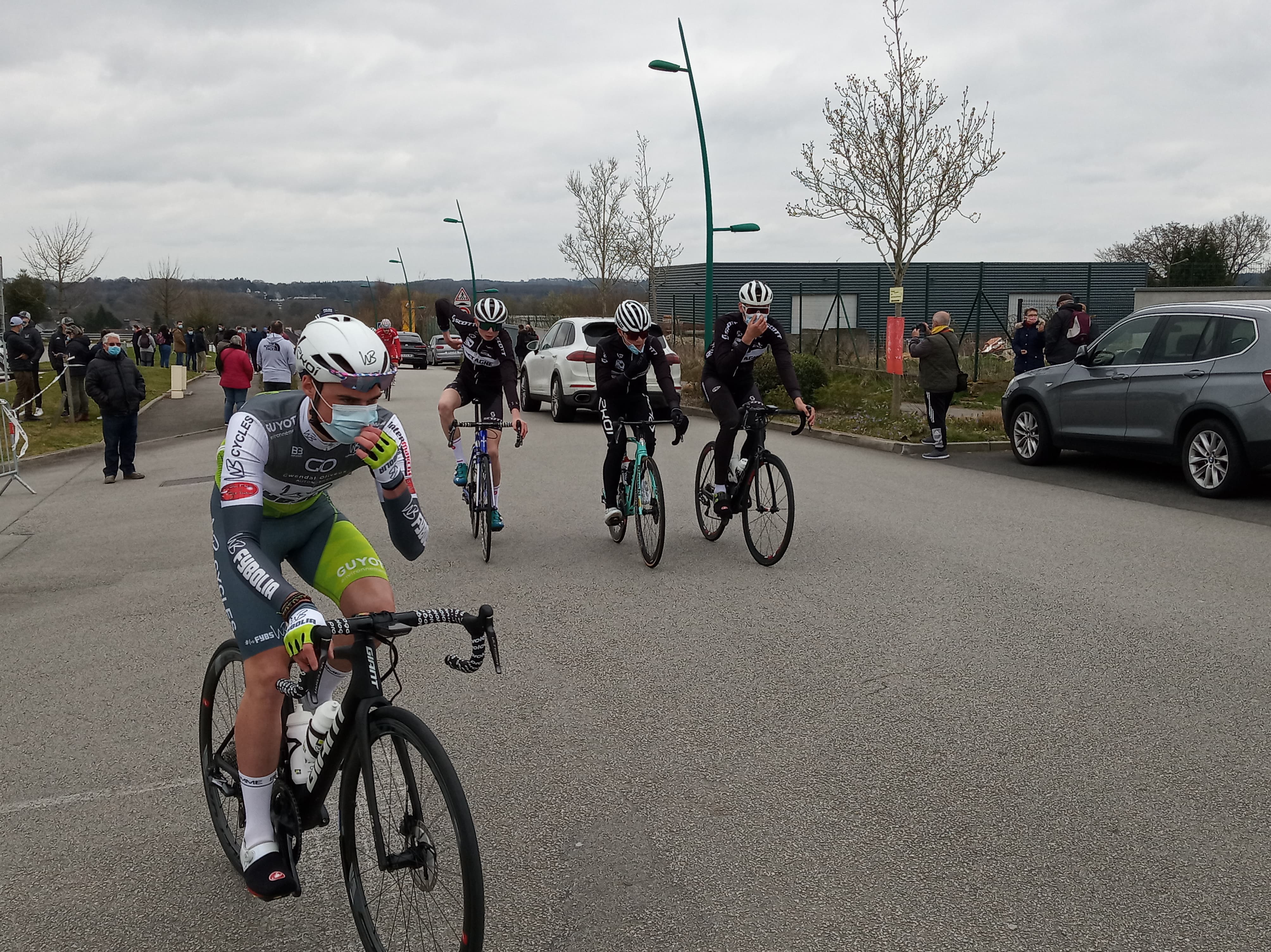 Un groupe est sorti avec Mathis LE BERRE (Côtes d'Armor-Marie Morin-U), Guillaume COQUEN (Team Hennebont Cyclisme), Fabio DO REGO (UC Nantes Atlantique), Thibault VALOGNES (VC Rouen 76), Célestin GUILLON (Laval Cyclisme 53), Baptiste VEISTROFFER (UCK Vannes), Youen GLON (VS Valletais), et Léo DANES (Dinan Sport Cycling).