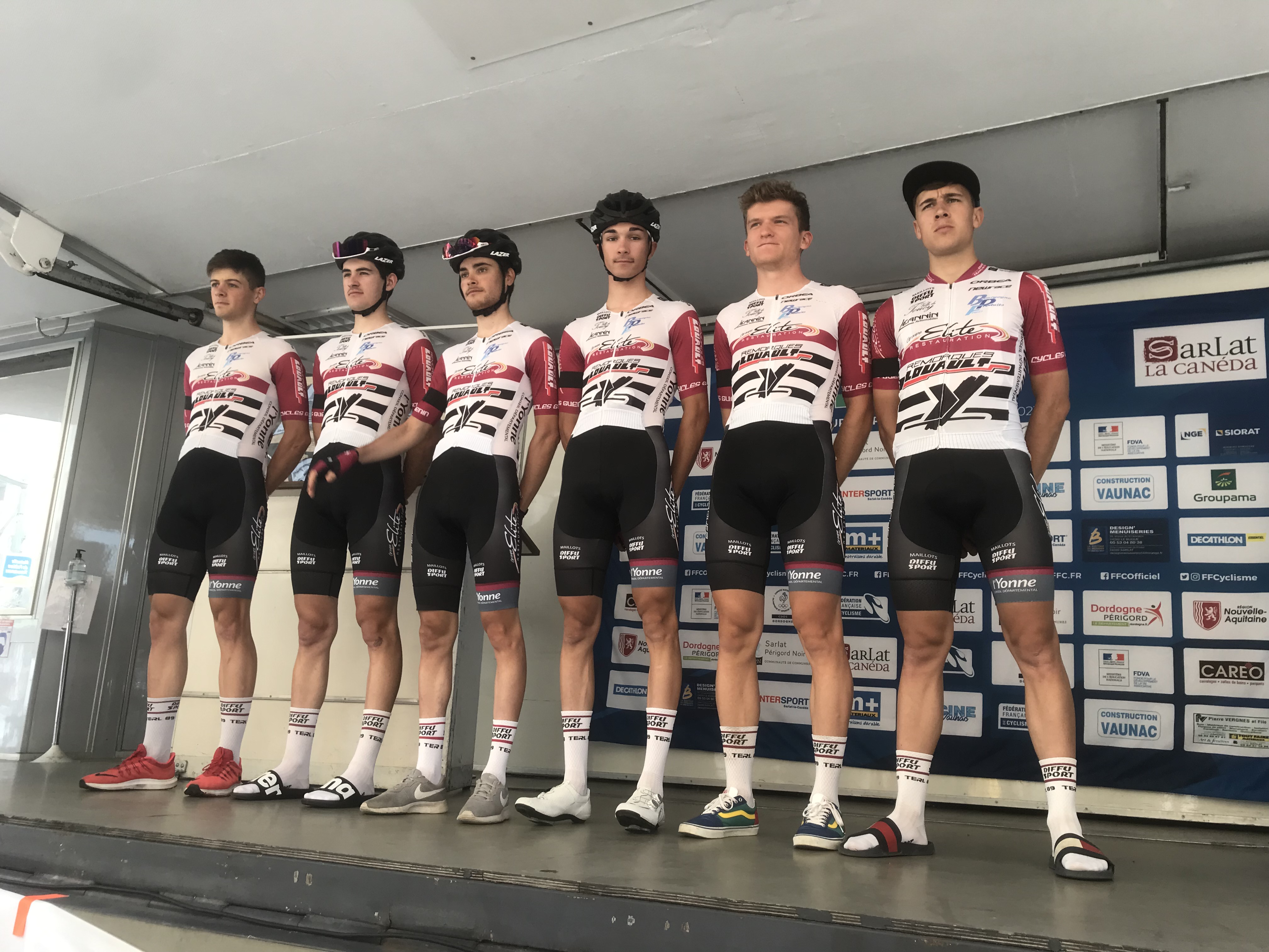 à 30'' : Titouan MARGUERITAT (CC Périgueux Dordogne), Davy ROMIAN, Arnaud VOSS (Team LMP-La Roche Vendée Cyclisme), et Yohan SOUBES (Team 24)