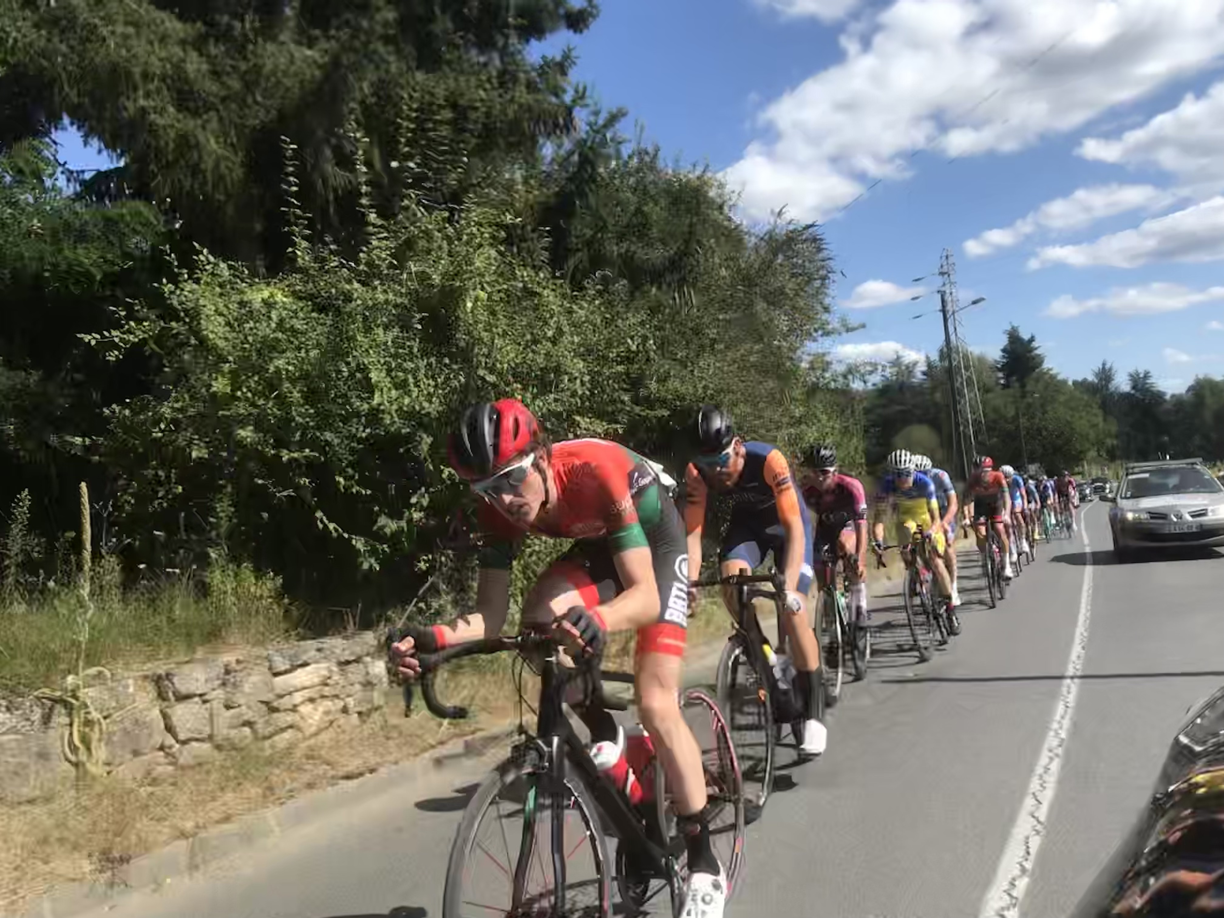 Damien LAPOUGES (CC Périgueux Dordogne), Valentin BRAMOULLÉ (UC Cholet 49), Thomas ORGIAZZI (C'Chartres Cyclisme), et Alexandre BRISARD (VS Valletais) sont lâchés du peloton dans la bosse.