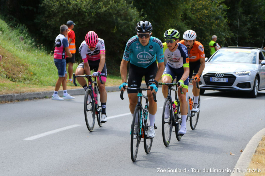 Léo DANÈS (Team U Nantes Atlantique) a lâché prise à l'avant de la course. Il compte déjà 20" de retard sur ses compagnons d'échappée.