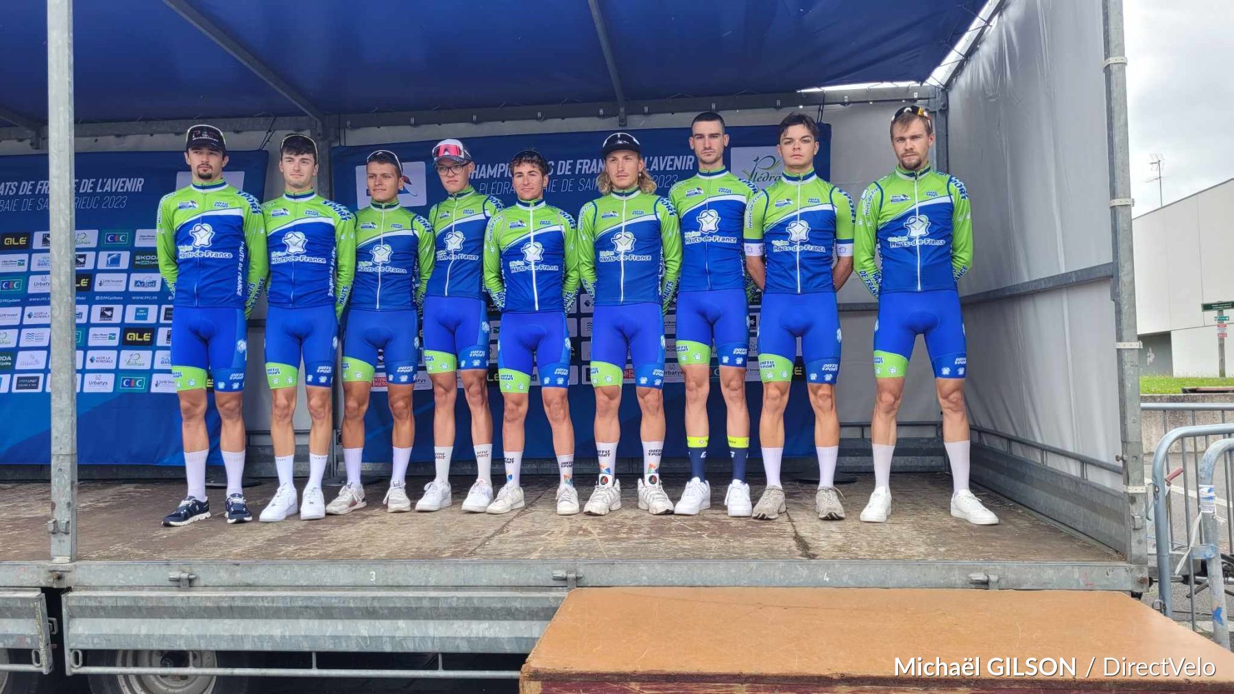 En tête : Antoine HUBY, Nicolas ROUSSET-FAVIER (Pays de la Loire), Enzo BOULET, Brieuc ROLLAND, Baptiste GILLET, Killian VERSCHUREN, Gaspard ANDRÉ (Bretagne), Yohann SIMON, Max DELARUE (Normandie), Sam MAISONOBE (Ile-de-France), Eliott PIERRE, Kylian SENICOURT, Alexy FAURE-PROST (Bourgogne-Franche-Comté), Axel HUENS (Hauts-de-France), Arthur MEYER, Louis ROULAND, Victor JEAN, Axel SALVADORI, Maximilien JUILLARD, Colin SAVIOZ (Auvergne-Rhône-Alpes), Rémi LELANDAIS (Grand Est), Alex JOB (Occitanie), Romain LUINAUD (Nouvelle Aquitaine), et Oscar NILSSON-JULIEN (Région Sud).