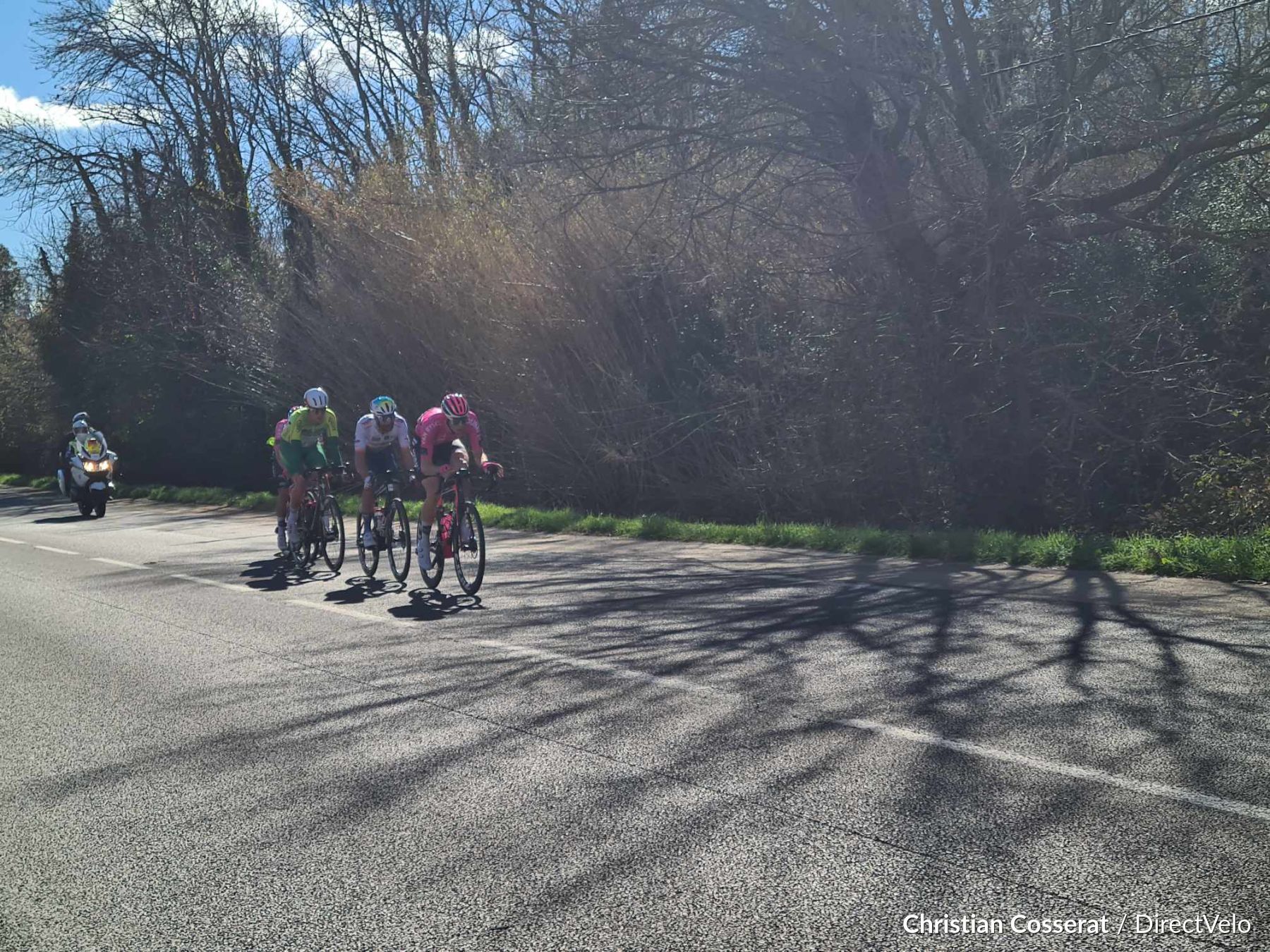Tête de la course : Kenny MOLLY, Kévin AVOINE (Van Rysel-Roubaix), Thibaut BERNARD (Bingoal-WB), Fabien GRELLIER (TotalEnergies), et Kasper SAVER (Philippe Wagner-Bazin) ;