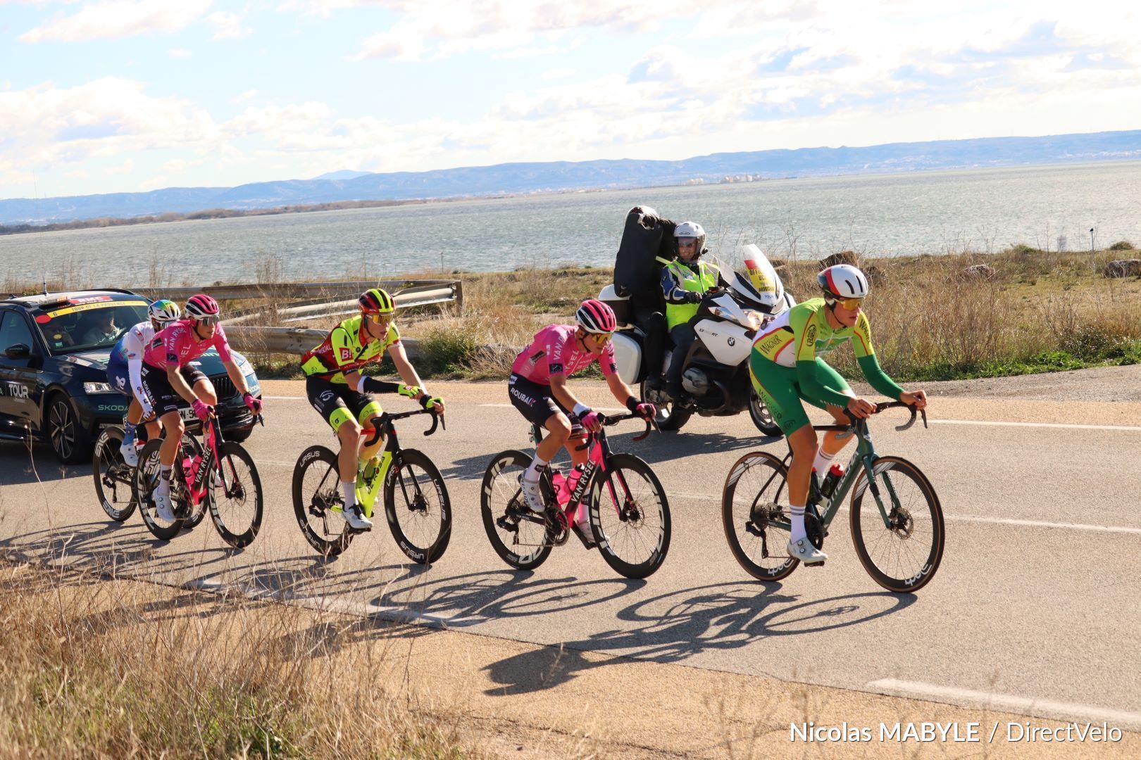6'25" de marge pour Kenny MOLLY, Kévin AVOINE (Van Rysel-Roubaix), Thibaut BERNARD (Bingoal-WB), Fabien GRELLIER (TotalEnergies), et Kasper SAVER (Philippe Wagner-Bazin)