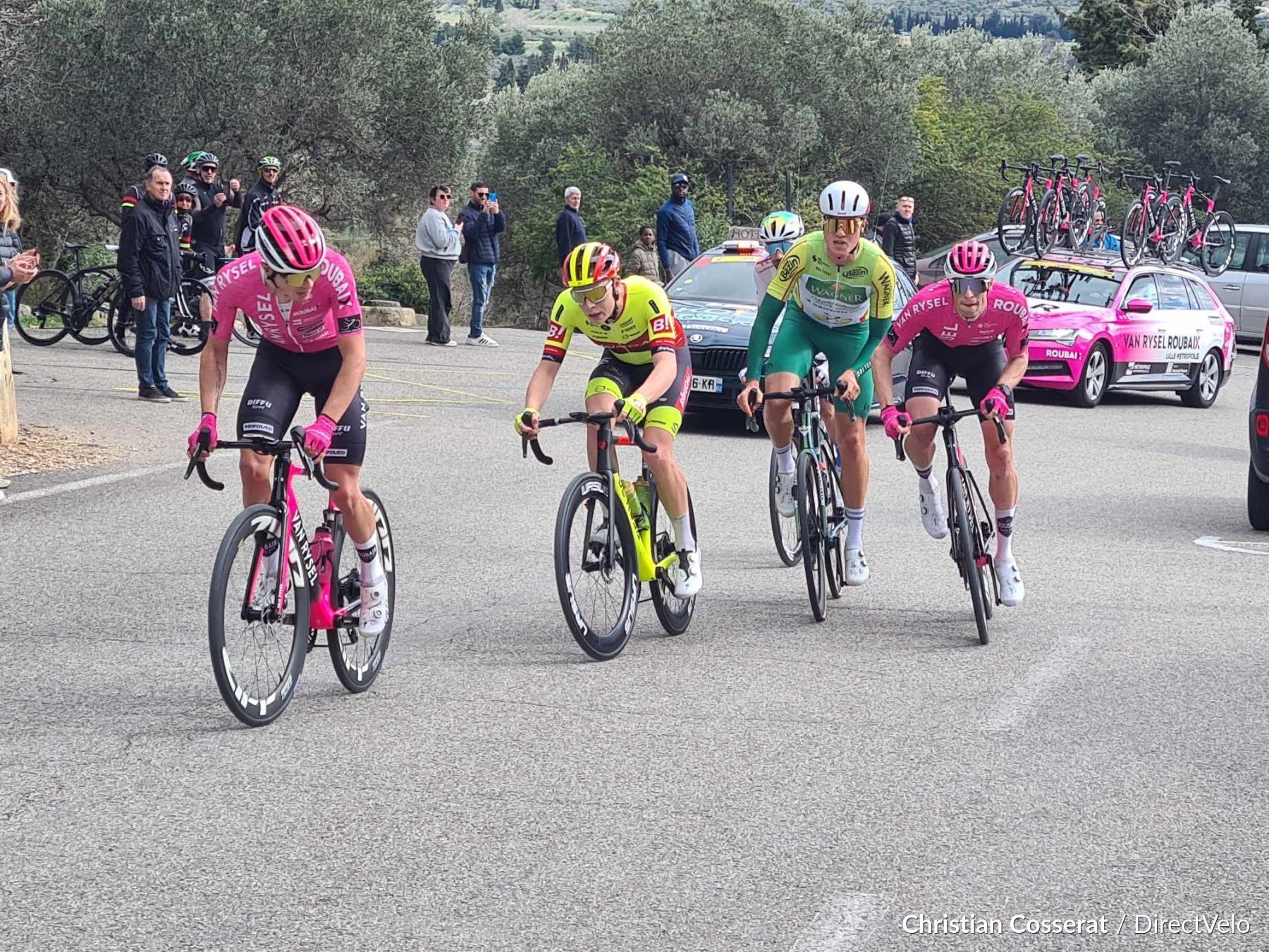 La bataille commence pour prendre la roue de Mads PEDERSEN (Lidl-Trek), grand favoris pour réaliser un Grand Chelem sur les routes de la Provence.