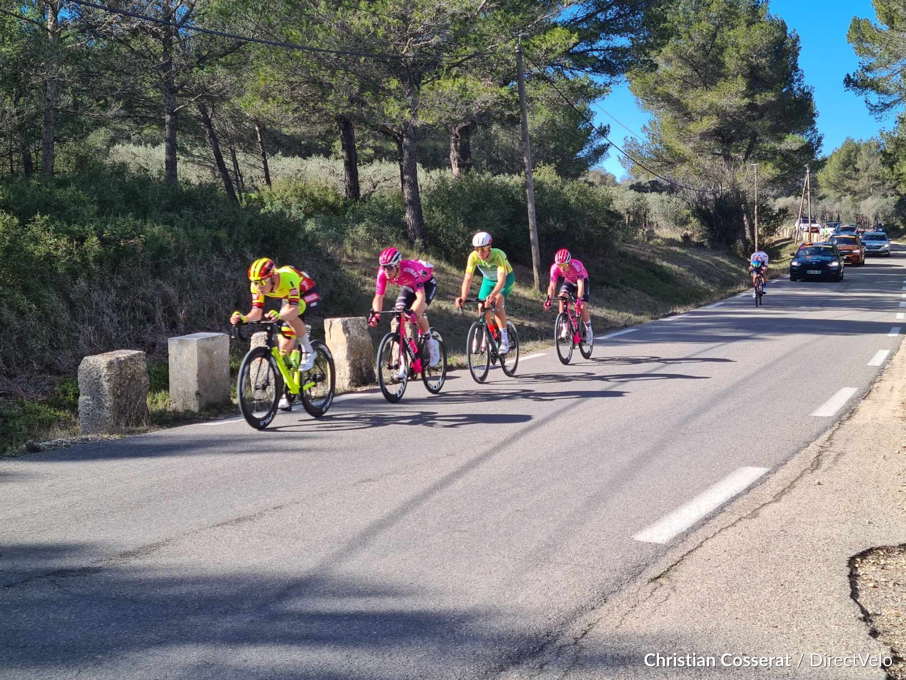 Les coureurs sont à la sortie de Maussane-Les-Alpilles.