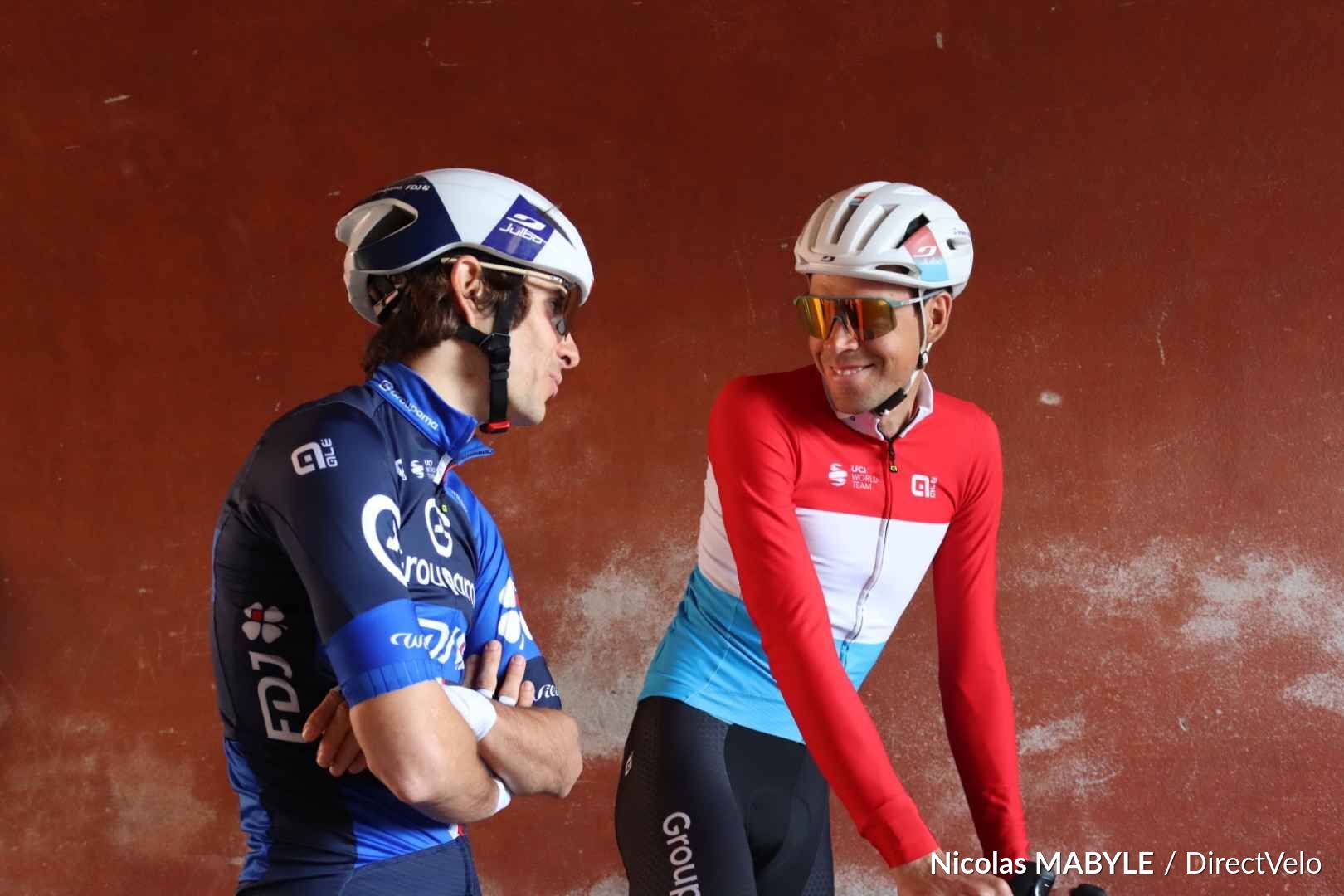 En tête : Santiago BUITRAGO SANCHEZ (Bahrain Victorious) et Christian SCARONI (XDS Astana Team)