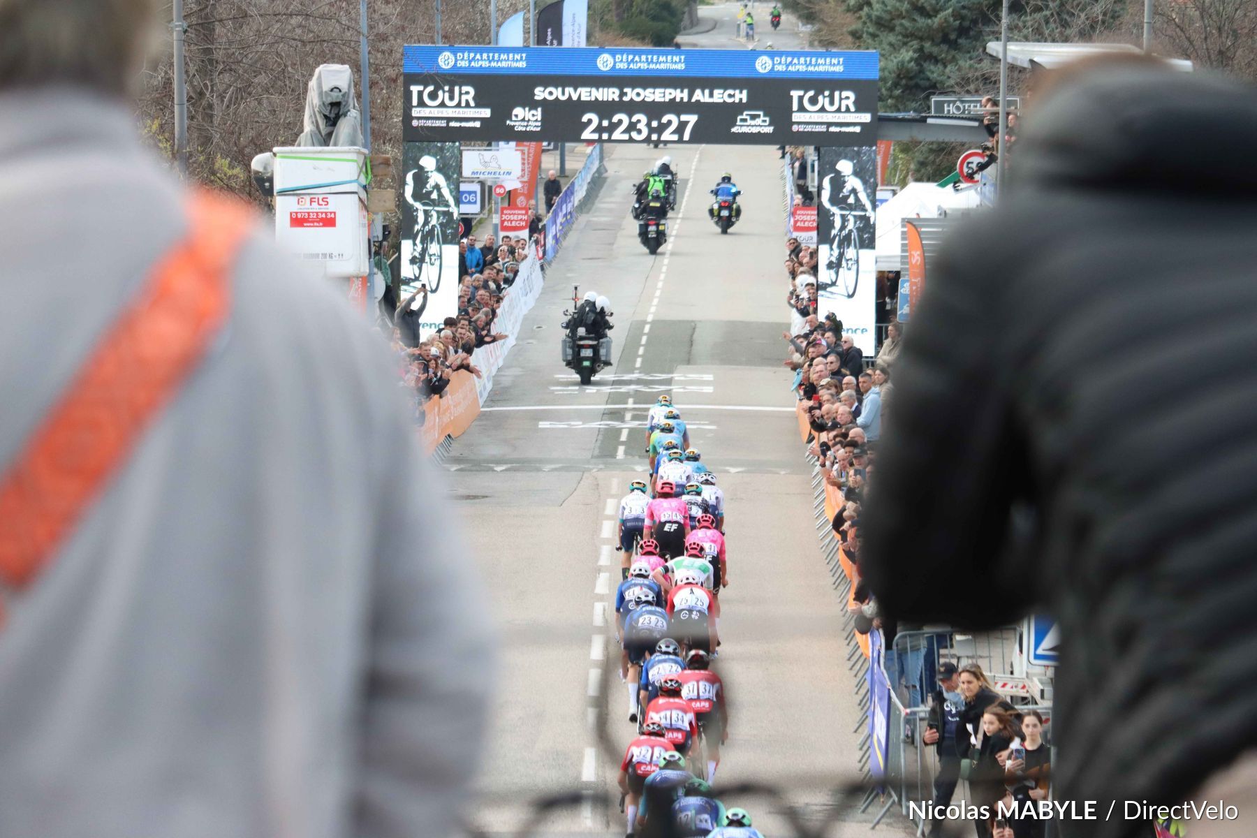 Premier passage des coureurs sur la ligne d'arrivée à Vence.