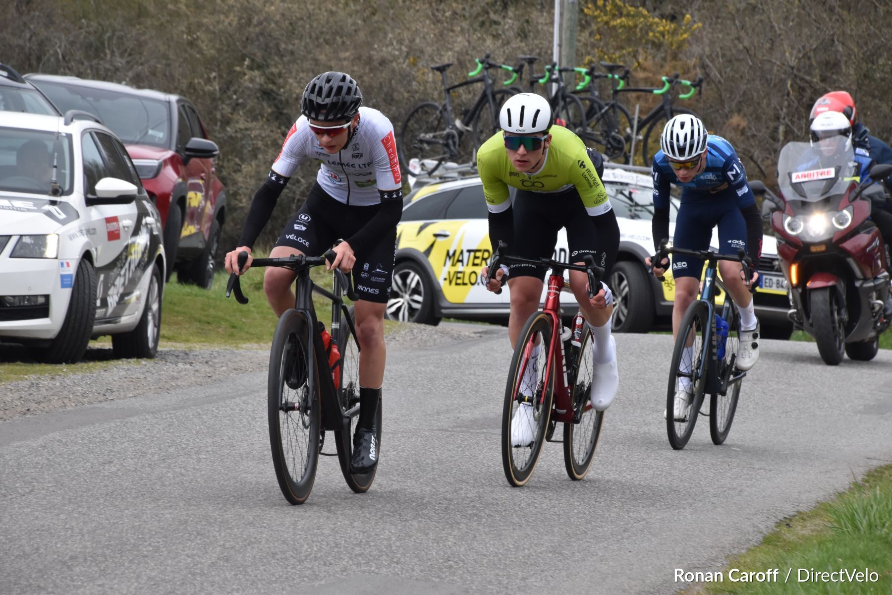 À 1'25", Ewen GAILLARD (Association Cycliste Noyal-Châtillon), Julian LE HER (Sportbreizh Axel Armor-Lux U19) et Simon DEFRANCE (Cercle Nouvelle Aquitain)