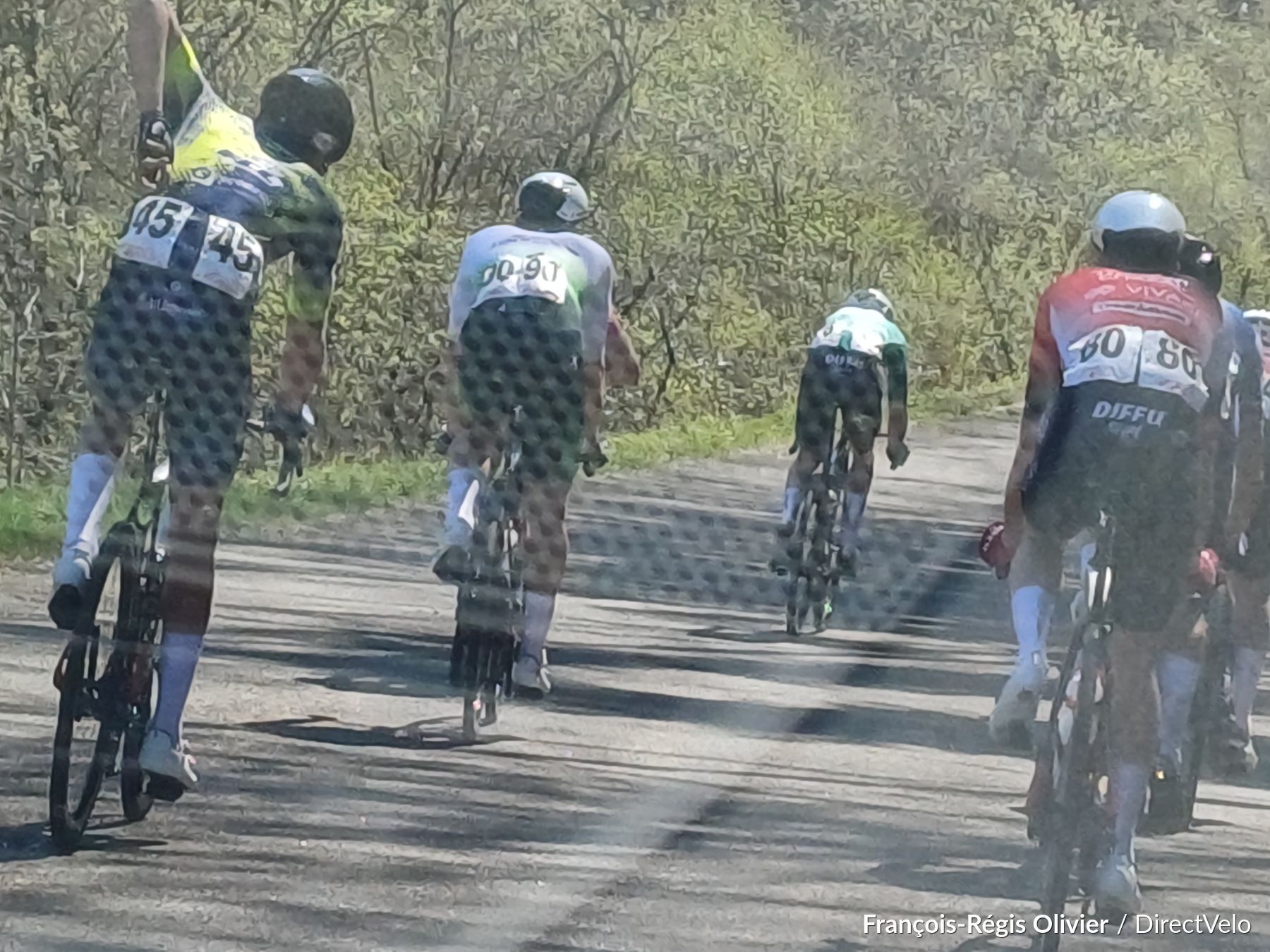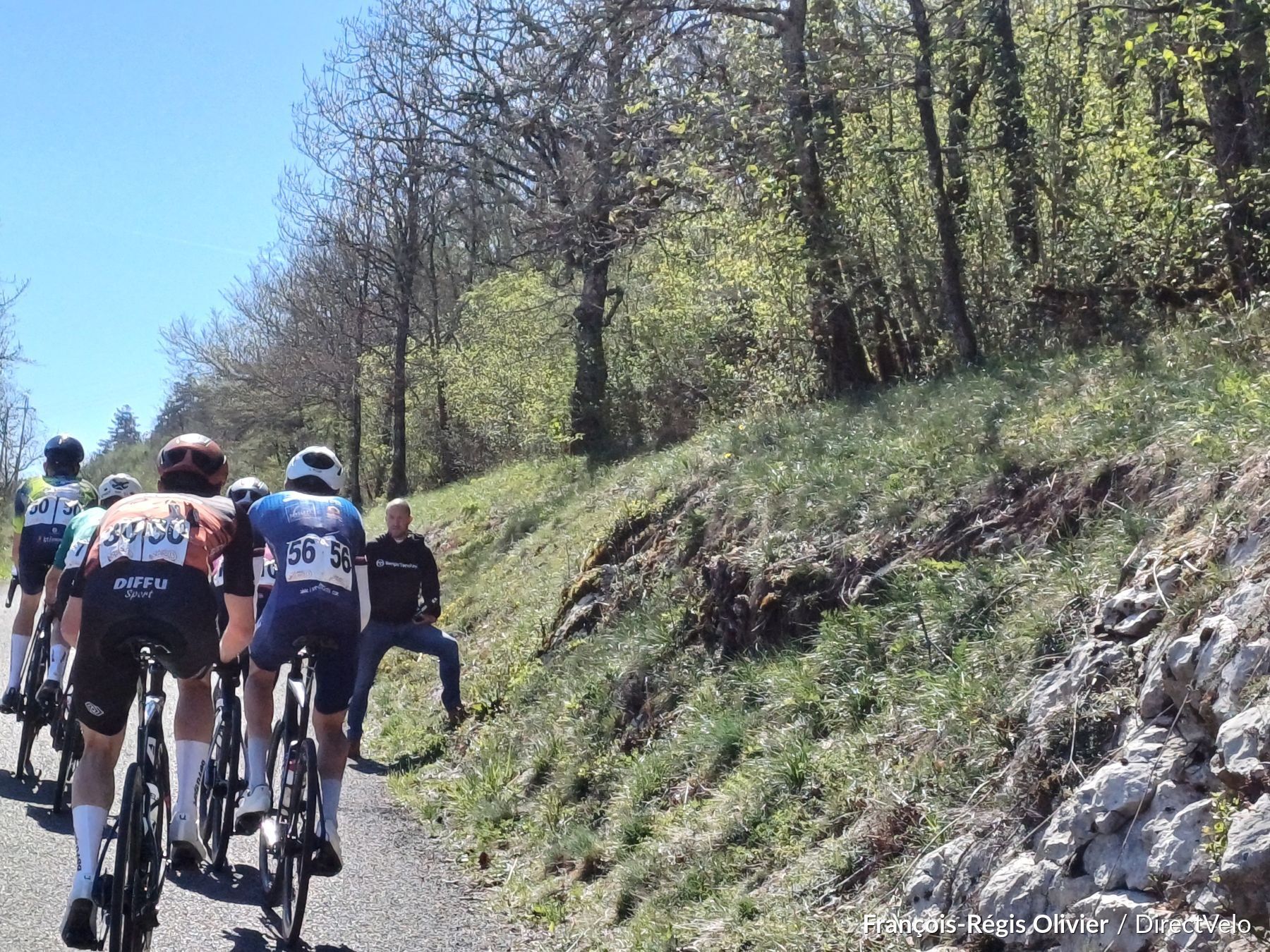 En tête : Louis FERREIRA, Yoan MORIN (Bourg-en-Bresse Ain Cyclisme), Simon ROBIN (Hexagone-Corbas Lyon Métropole), Larry VALVASORI (AC Bisontine), Jérôme RAUS I (Béziers Méditerranée Cyclisme) et Eliot PAUCHARD (Charvieu-Chavagneux IC).