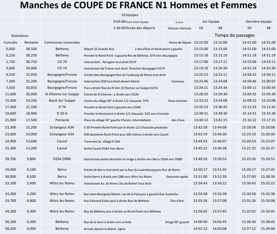 Le CLM Champenois, deuxième manche de la Coupe de France N1 Femmes, aura lieu ce dimanche 18 mai. Au programme de ce chrono par équipes : 38,5 kilomètres, autour de Bétheny (Marne). La première équipe s'élancera à 13h15, avec un départ toutes les 3 minutes. Le Chambéry CC Féminin occupe la tête de la Coupe de France N1 (voir classement).