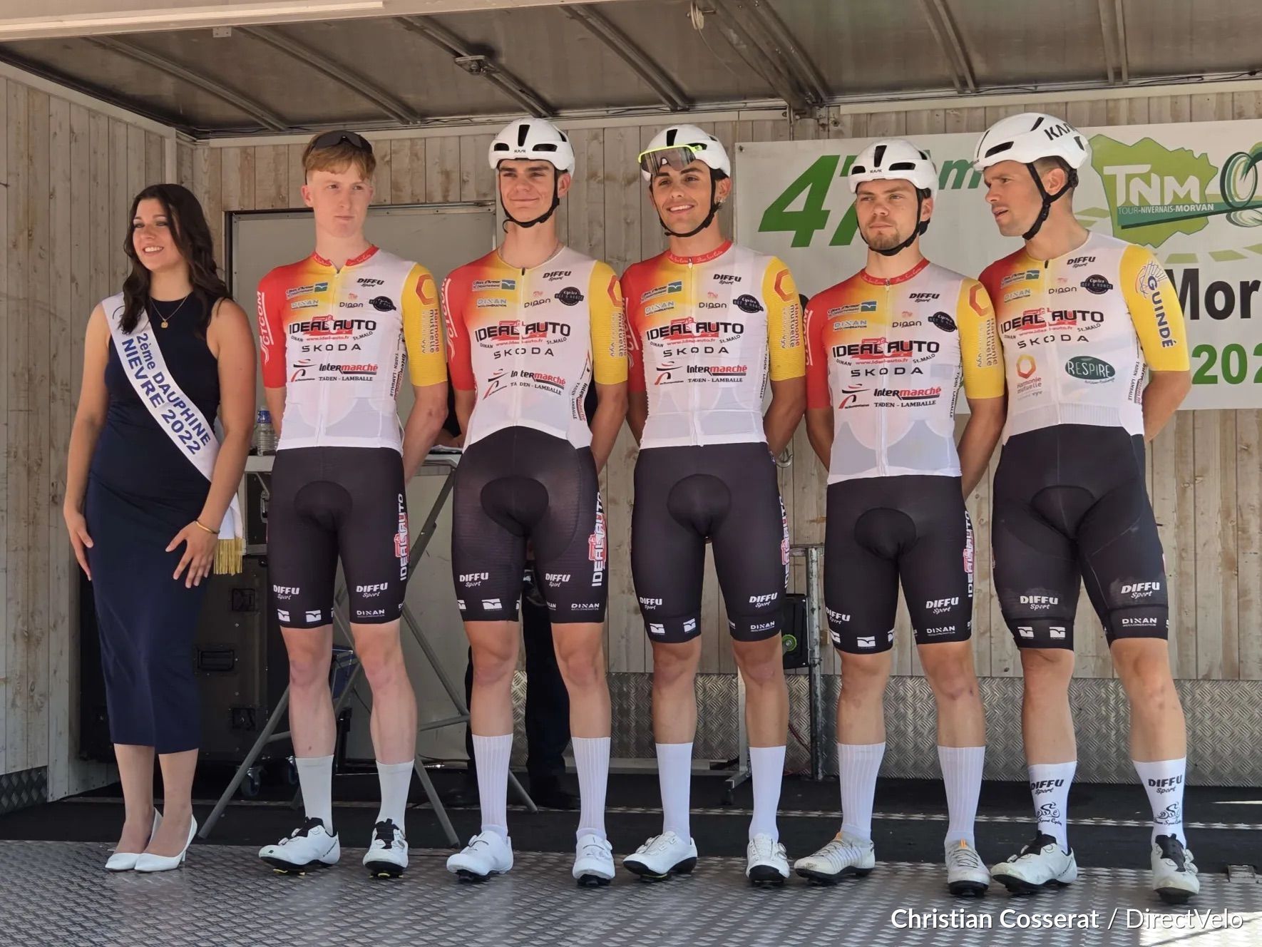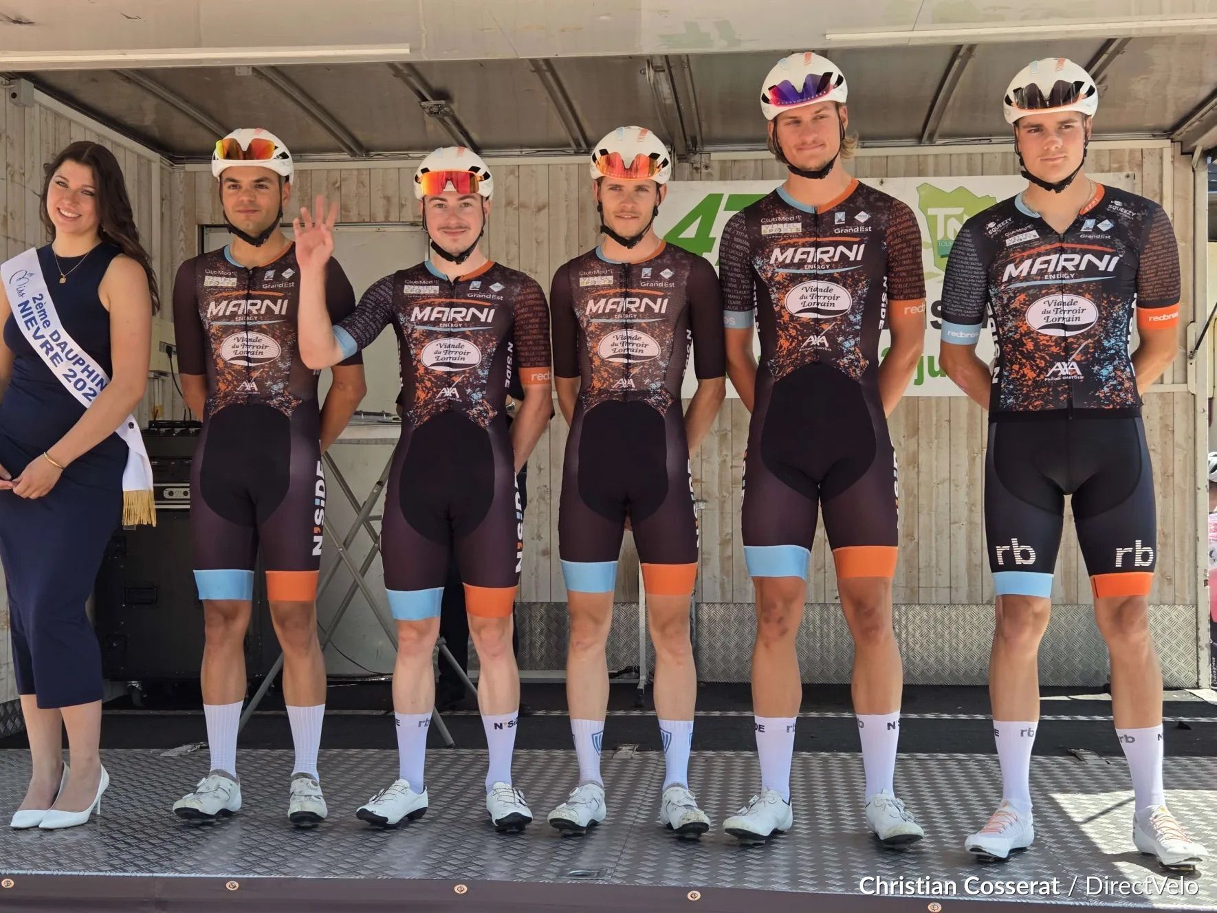 En tête : Lucas GRIECO (AVC Aix Provence Dole), Théo THOMAS (SCO Dijon-Team Materiel-velo.com), Thomas HUSNI (Charvieu-Chavagneux IC), Alexandre BINGGELI (Elite Fondations Cycling Team) et Lorenzo MARASCO (Team Marni-N'side)