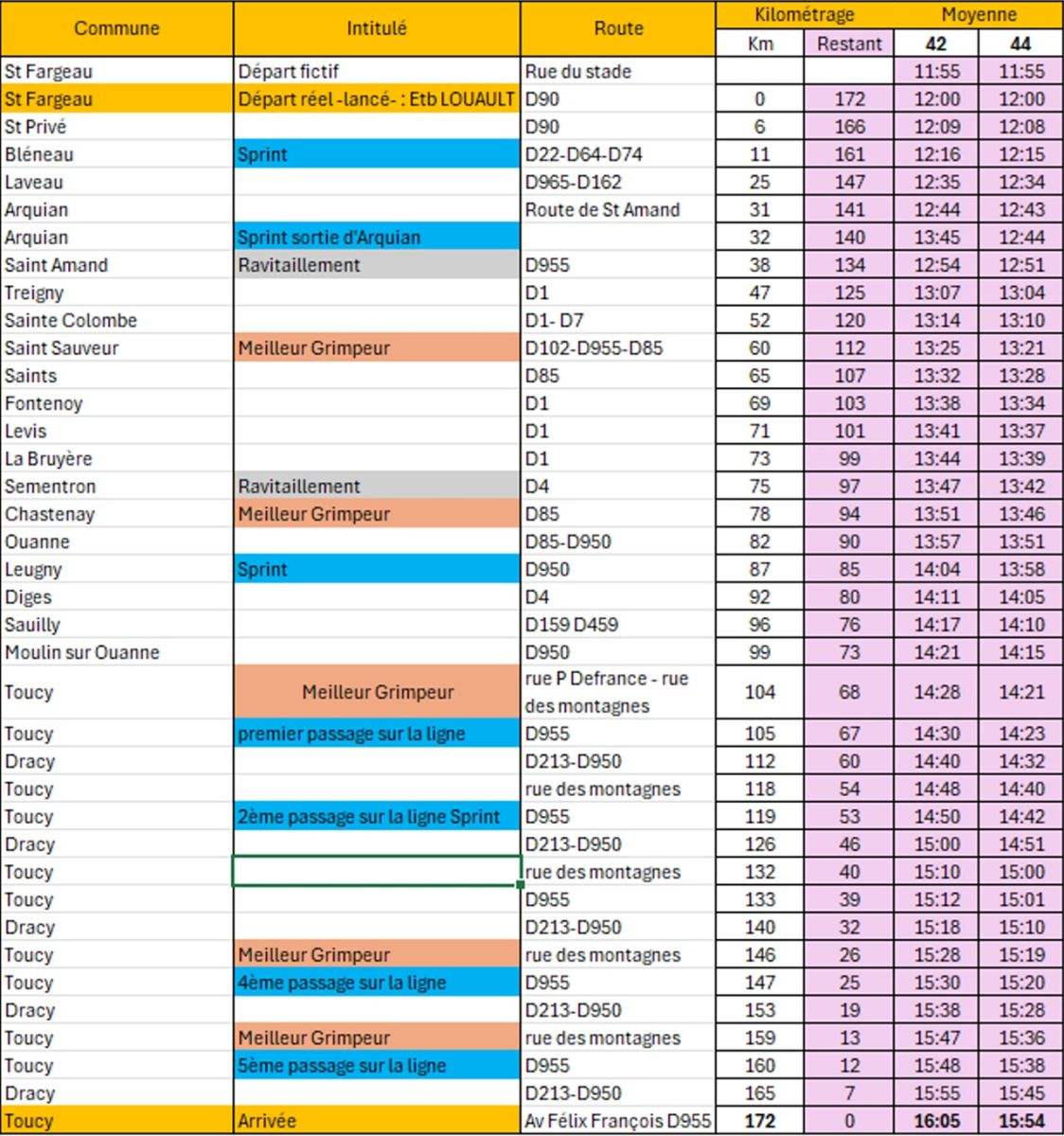 Le départ sera donné à 11h55. Les coureurs devront parcourir 170 kilomètres -105 km en ligne et 5 tours de circuit de 13 km - entre Saint-Fargeau et Toucy (Yonne).