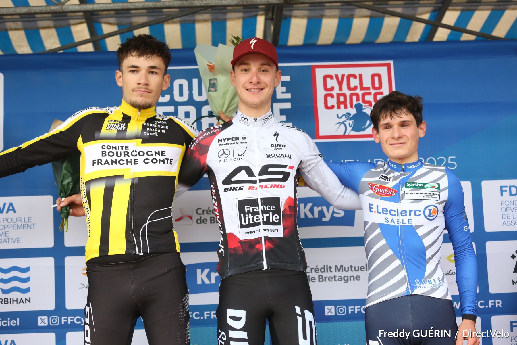 Théophile VASSAL (Jura Cyclisme Pays du Revermont), Thomas COURCIER (Sablé Sarthe Cyclisme) et Jules SIMON (AS Bike Racing-France Literie) se jouent la 3ème place.